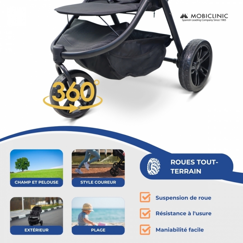 Poussette à 3 roues |Légère |Roues tout terrain |Harnais 5 points |Poche arrière |Max. 22kg |Agnes| Mobiclinic