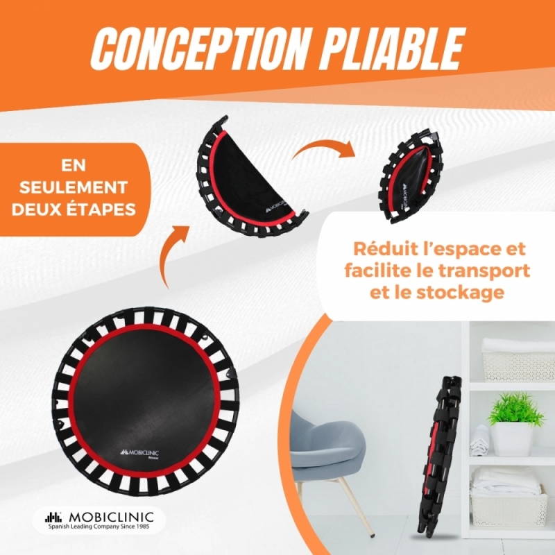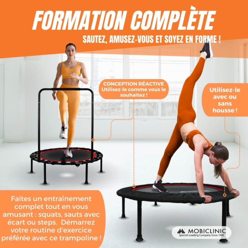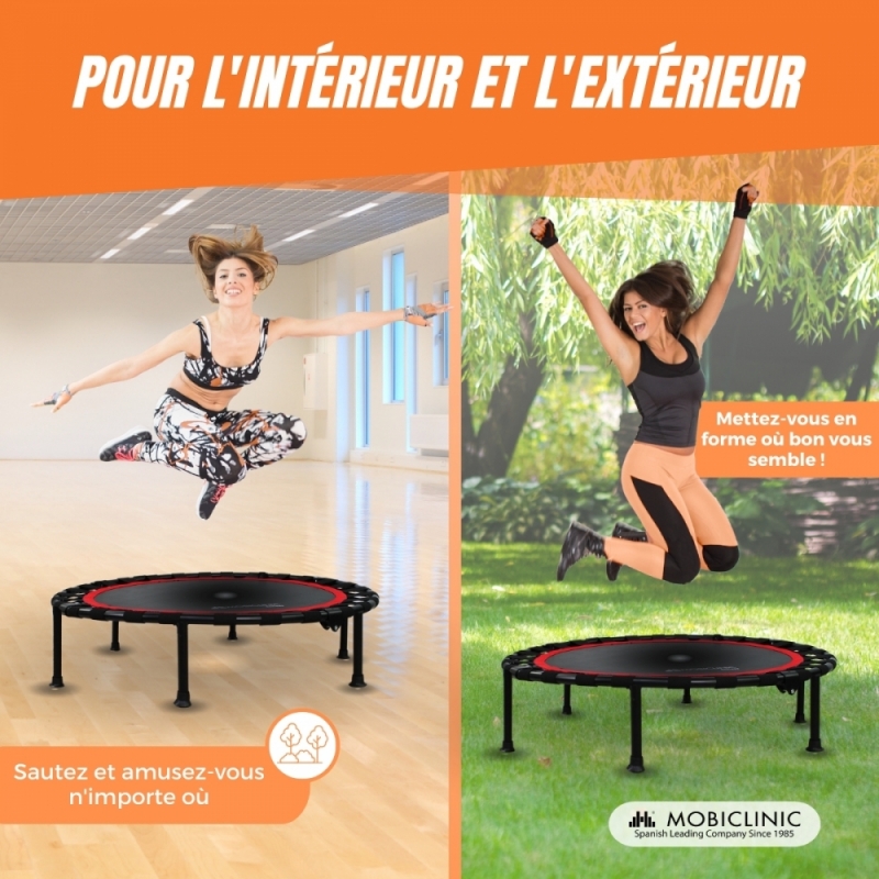Le trampoline Kangumobi transforme l'exercice en une activité amusante et efficace. Vous pouvez faire une variété d'exercices. Seulement 10 minutes de saut sur le trampoline équivalent à la dépense calorique d’une heure de jogging ou de 20 minutes de natation, ce qui en fait un moyen efficace de rester en forme et d’améliorer votre santé cardiovasculaire.