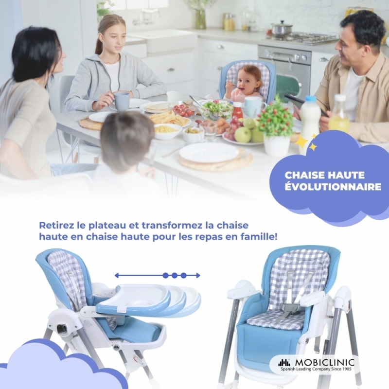 Avec son plateau amovible , NALA permet à votre tout-petit de partager une table avec vous, favorisant l'unité familiale et apprenant les habitudes alimentaires dès le plus jeune âge. De plus, il facilite l'apprentissage de manger seul , développant l'autonomie et la motricité.