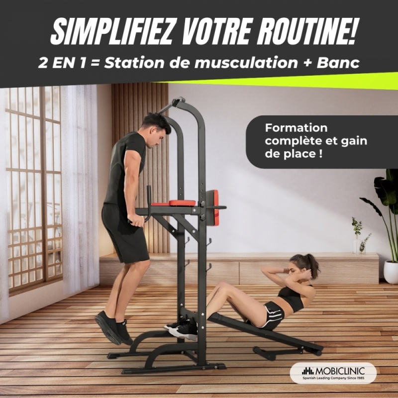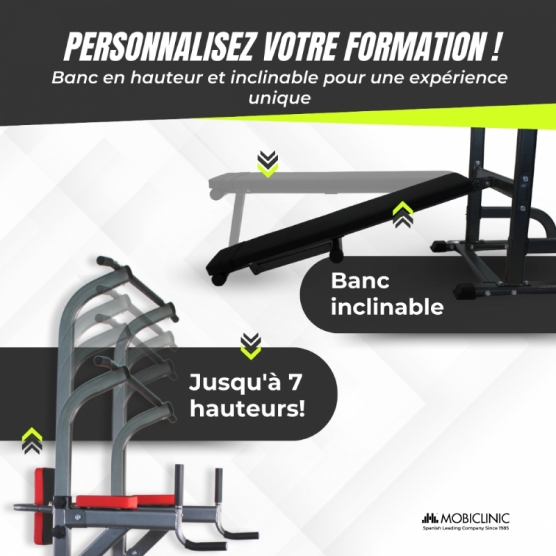 La station de musculation DOMIFIT est la solution parfaite pour ceux qui recherchent un équipement de fitness multifonctionnel à la maison. Conçue pour s’adapter à différentes intensités d’entraînement, cette station est idéale aussi bien pour les athlètes débutants que avancés. Sa conception pliable facilite le rangement, ce qui en fait une option pratique pour tous les types de maisons.