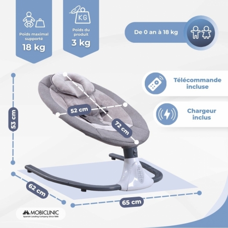 Fonctionnalités pratiques pour les parents : La balancelle pour bébé est équipée d’une télécommande permettant de régler facilement les paramètres sans avoir à se lever. Les parents peuvent ainsi contrôler à distance la vitesse du balancement, diffuser de la musique ou activer la minuterie, ce qui est particulièrement utile lorsque bébé dort déjà ou lorsque les parents sont occupés.