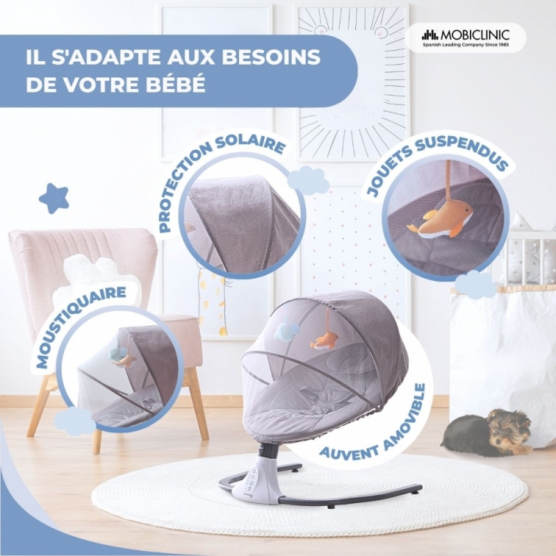 FONCTION DE BERCEMENT RÉGLABLE : Offre plusieurs vitesses pour adapter le mouvement aux préférences de bébé. Idéal pour apaiser et favoriser l’endormissement.