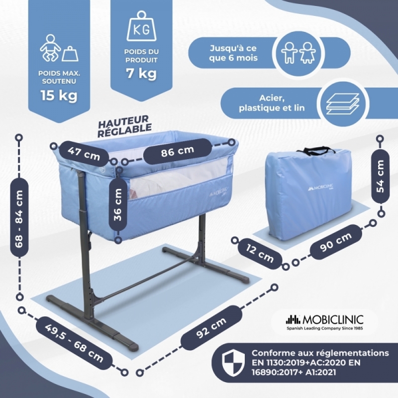ACCÈS AU BÉBÉ : La fonction principale de ces mini berceaux est de permettre un accès rapide et direct au bébé pendant la nuit. Ils sont conçus avec différentes hauteurs qui s'adaptent à différents types de lits familiaux.