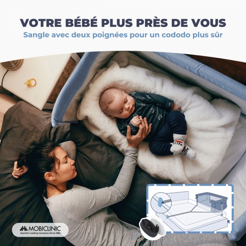 Les berceaux cododo sont utilisés dans les premiers mois de la vie d'un bébé pour assurer un repos correct et sûr des plus petits. Ces berceaux pour nouveau-nés sont directement ancrés au lit, avec deux sangles entre le matelas et le sommier, et leur fonction principale est un accès facile aux soins du bébé la nuit avec différentes hauteurs qui s'adaptent aux différents types de lits familiaux.