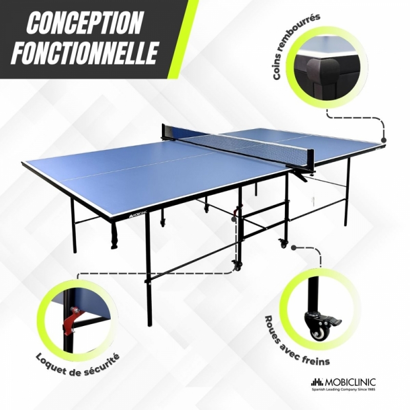 SÉCURITÉ ET STABILITÉ : La table de ping-pong Tokyo offre une expérience sûre et agréable pour toute la famille, vous permettant de jouer en toute confiance. Elle est équipée de roulettes pivotantes à 360° avec freins de sécurité et d’un loquet de sécurité empêchant l’ouverture de la table lorsqu’elle est pliée.