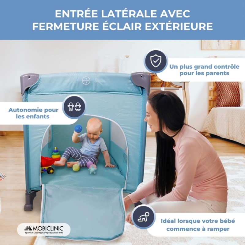 Ce lit de voyage est idéal pour les familles qui voyagent souvent ou qui ont une résidence secondaire. C'est également une option efficace pour laisser le bébé chez les grands-parents, les oncles ou d'autres proches, et même dans les salles de transit afin que le bébé puisse jouer ou se reposer quelques minutes en toute sécurité sous la surveillance d'un adulte.