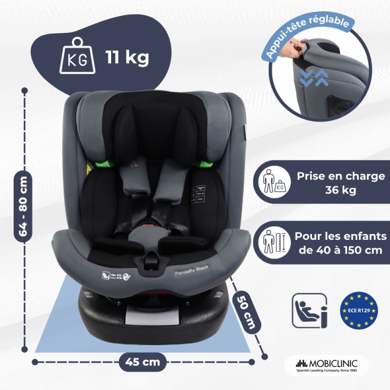 Le siège auto pour enfant Pandafix allie sécurité, confort et polyvalence, devenant le compagnon idéal pour chaque étape de la croissance de l'enfant. Conçue pour protéger de 167 jours à 12 ans environ (40-150 cm/36 kg), cette chaise se démarque par sa technologie de pointe et sa capacité à s'adapter aux besoins changeants de l'enfant et de sa famille.