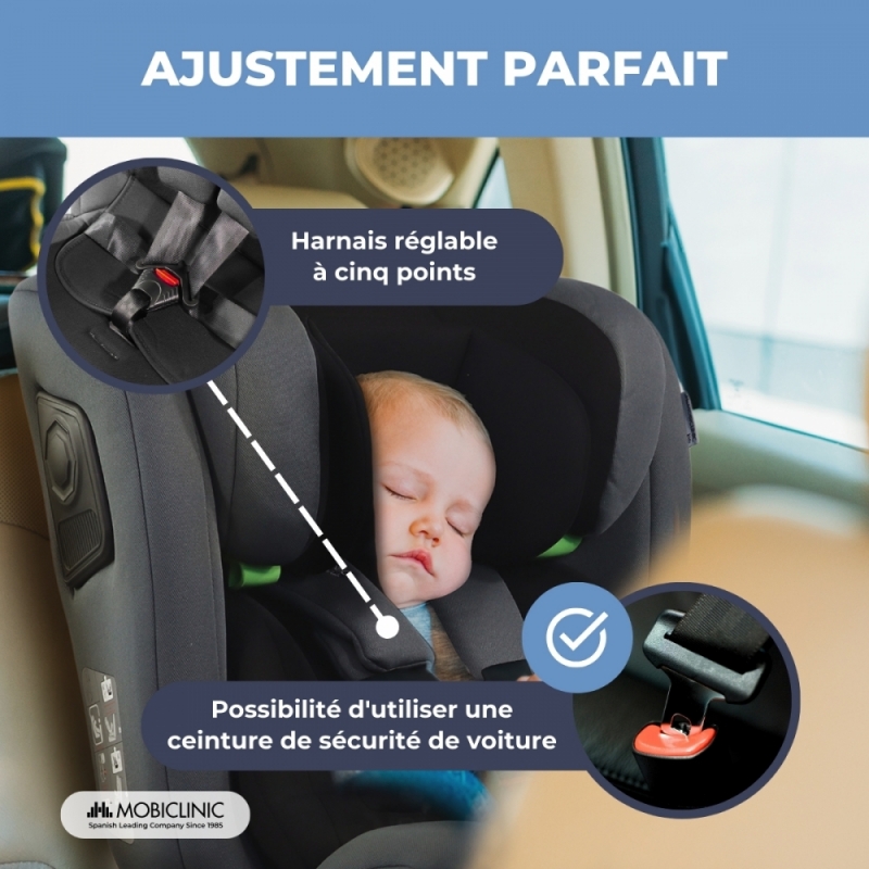 ROTATION À 360º : La rotation à 360º facilite l'accès à l'enfant sous n'importe quel angle, ce qui rend son placement ou son retrait du véhicule beaucoup plus confortable. Ce système permet également de changer facilement l'orientation de la chaise, en l'adaptant vers l'avant ou vers l'arrière en fonction de l'âge et de la taille de l'enfant. Le siège auto garantit un placement correct à tout moment, favorisant le confort et la protection pendant le voyage.