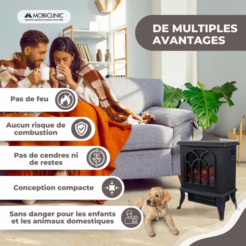 FLAMME 3D RÉALISTE : Cette cheminée imite la sensation d'un feu classique, sans les dangers associés aux flammes nues ou à la fumée. Il est parfait pour générer une atmosphère chaleureuse et naturelle dans votre maison, offrant une expérience de confort similaire à celle d'une cheminée traditionnelle, mais de manière sûre et efficace.