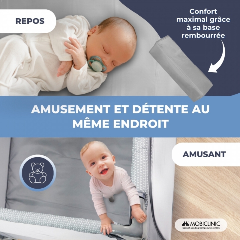 Le parc Sleepland est le choix idéal pour les familles qui recherchent une solution pratique et fonctionnelle pour prendre soin de leur bébé. Ce produit polyvalent combine deux fonctions essentielles : un espace sécuritaire pour jouer et un endroit parfait pour se reposer.