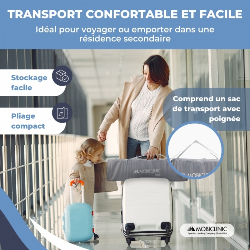 PLIABLE ET PORTABLE : Le parc Sleepland dispose d'un système de pliage rapide et facile qui lui permet d'être rangé ou transporté sans complications, en occupant le moins de place possible. De plus, il comprend un sac de transport résistant qui le rendra encore plus facile à transporter, idéal pour les voyages ou les visites. Parfait pour ceux qui recherchent confort et fonctionnalité dans un seul produit.