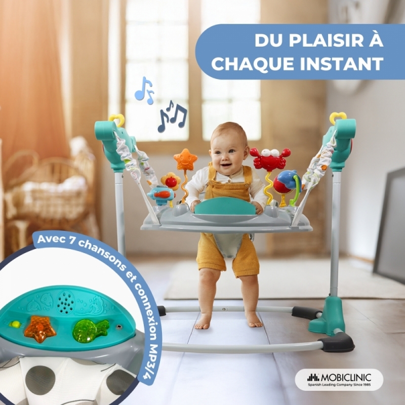 Ce sauteur pour bébé est parfait pour le développement et le divertissement des plus petits. Il allie apprentissage et plaisir, offrant 8 jouets interactifs qui stimulent la motricité fine et dispose également de 7 chansons et lumières intégrées qui aident au développement des sens.