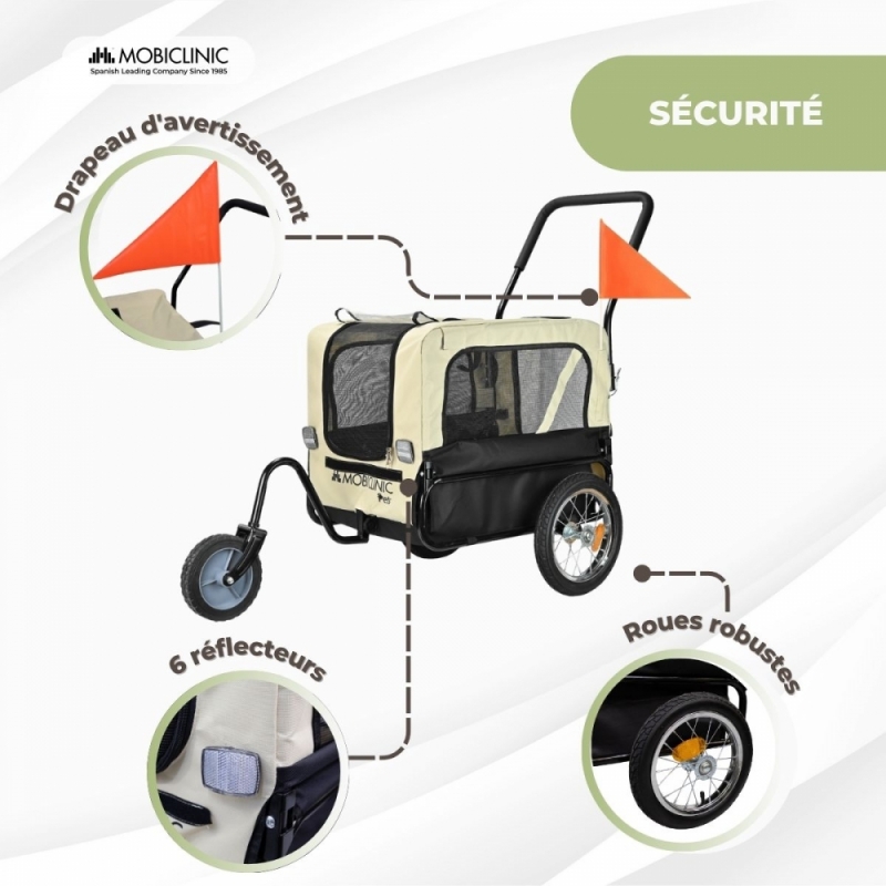 2 EN 1 : TRANSPORT POUR CHIEN ET REMORQUE À VÉLO : Cette remorque pour chien se transforme facilement en poussette grâce à sa roue avant amovible. Idéale pour des promenades ou des balades à vélo confortables avec votre animal.