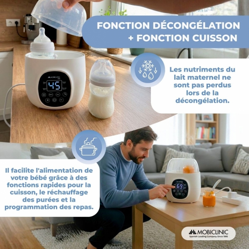 POLYVALENT ET MULTIFONCTIONNEL : Ce produit intègre 6 fonctions essentielles qui couvrent les besoins du petit : chauffe-biberon, stérilisateur à vapeur, maintient la température jusqu'à 48 heures, décongèle le lait maternel sans endommager les nutriments, cuit les aliments et réchauffe les repas.