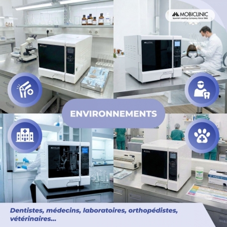 STÉRILISATION PROFESSIONNELLE ET SÛRE : Conçu pour éliminer totalement les micro-organismes, les champignons et les spores grâce à sa vapeur saturée à 99 %. Idéal pour les cabinets dentaires, les cabinets médicaux, les laboratoires, les cliniques orthopédiques et les centres vétérinaires, garantissant une désinfection efficace et sûre.