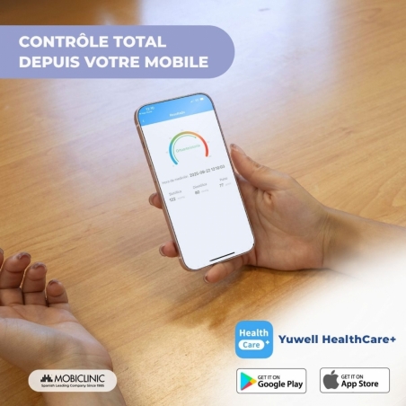 APPLICATION ET BLUETOOTH : Ce tensiomètre se connecte facilement à une application mobile via Bluetooth. Grâce à l’application Yuwell HealthCare+ , vous pouvez enregistrer jusqu’à 50 mesures et consulter l’historique de vos mesures sous forme de graphiques et de rapports datés. Vous pouvez également partager les résultats avec votre médecin, pour un suivi clinique optimal.