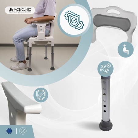 CONFORT MAXIMAL : La chaise de bain Guido est dotée de coussins d'assise et de dossier, offrant un confort supérieur à celui des autres modèles. De plus, grâce à sa conception, elle peut être utilisée comme chaise de bain, toilettes portables ou chaise de douche.
