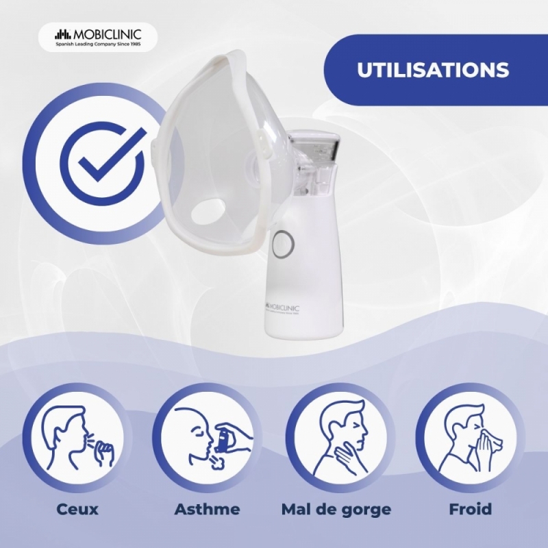Ce kit complet et adaptable comprend un embout buccal, un masque adulte et un masque enfant, idéal pour toute la famille. Son fonctionnement silencieux le rend idéal pour les traitements nocturnes ou pour une utilisation avec les enfants. Sa nébulisation est uniforme et efficace, avec une vitesse inférieure à 0,2 ml/min, garantissant une utilisation optimale du médicament.