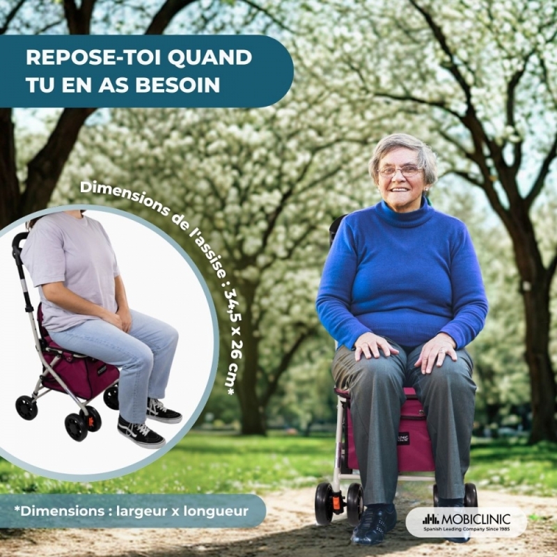 Grâce à ces caractéristiques, le déambulateur avec chariot de courses n'est pas seulement un produit conçu pour les personnes âgées à agilité limitée, mais également pour tous ceux qui souhaitent faire du shopping un plaisir.