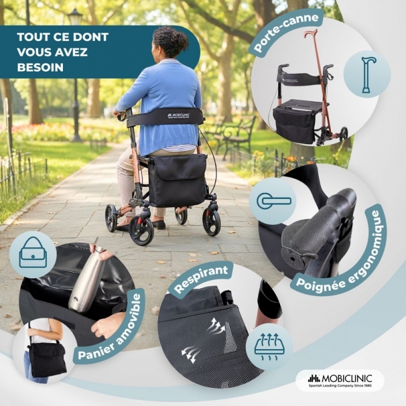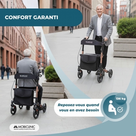 Ce déambulateur à 4 roues vous offrira un confort optimal grâce à son siège avec dossier, pour vous reposer quand vous en avez besoin. Il est également fourni avec un sac de courses, pour faire vos courses sans vous soucier du transport. Il est également équipé d'un porte-bagages pour emporter vos bagages et votre déambulateur en aluminium partout avec vous.