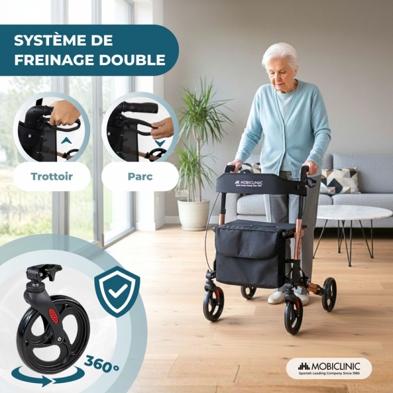 SÉCURITÉ : La sécurité est garantie grâce à son système de freinage manuel intégré aux poignées, qui vous permet de contrôler la vitesse et d'arrêter le déambulateur en toute confiance.
