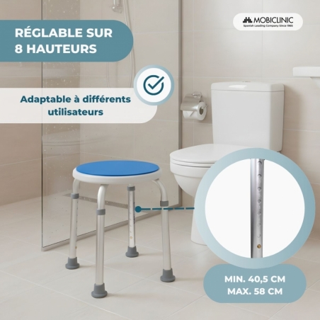 RÉGLAGE RAPIDE ET PRÉCIS : Ce tabouret de douche est doté d'un système à bouton-poussoir pour un réglage facile et sans outil de la hauteur. Il offre 8 positions pour s'adapter aux différents besoins de l'utilisateur.