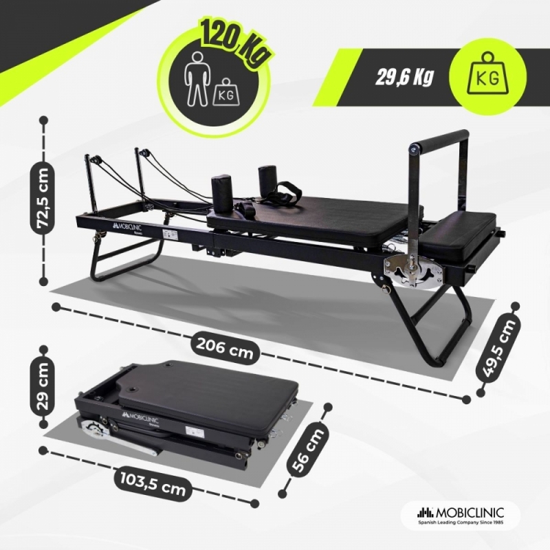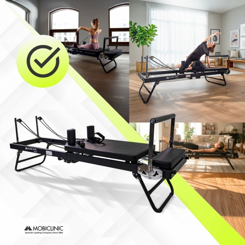 CONCEPTION PLIABLE ET STABLE : Cet appareil de Pilates est fabriqué en acier et supporte jusqu’à 120 kg et les utilisateurs mesurant jusqu’à 180 cm. Il se plie facilement et rapidement et se déplace aisément grâce à ses roues arrière. Des tapis antidérapants sont inclus pour une stabilité et une sécurité accrues.