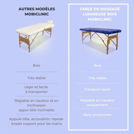 Table de massage pliante | Bois | Portable | 180x60 cm | Massage | Bleu | CM-01 BASIC | Mobiclinic