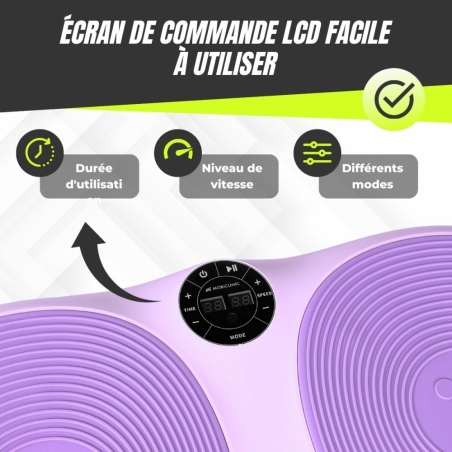 Son moteur de 200 W assure une vibration stable et constante, favorisant le travail musculaire. Il propose 99 niveaux de vitesse, permettant un réglage précis de l'intensité en fonction des objectifs et du niveau de forme physique de chacun. Neuf programmes automatiques (P1 à P9) combinent progressivement différentes vitesses, simplifiant ainsi votre entraînement. De plus, son écran numérique affiche clairement la durée et la vitesse sélectionnées, permettant un suivi en temps réel de votre séance.