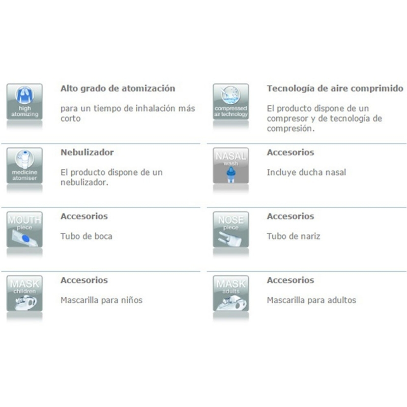 Ce inhalateur est idéal pour les personnes souffrant d’asthme ou d’allergie, car il fonctionne avec la technologie d'air comprimé avec compresseur, technologie qui, par la pression, permet à un plus grand nombre de particules de médicament liquides de pénétrer dans les poumons.