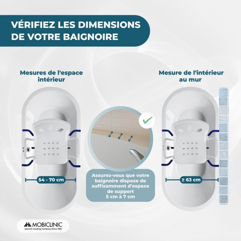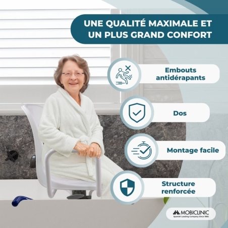 ADAPTABLE : Le siège de bain s'intègre parfaitement. Inutile de modifier la salle de bain ; il s'adapte à vous.