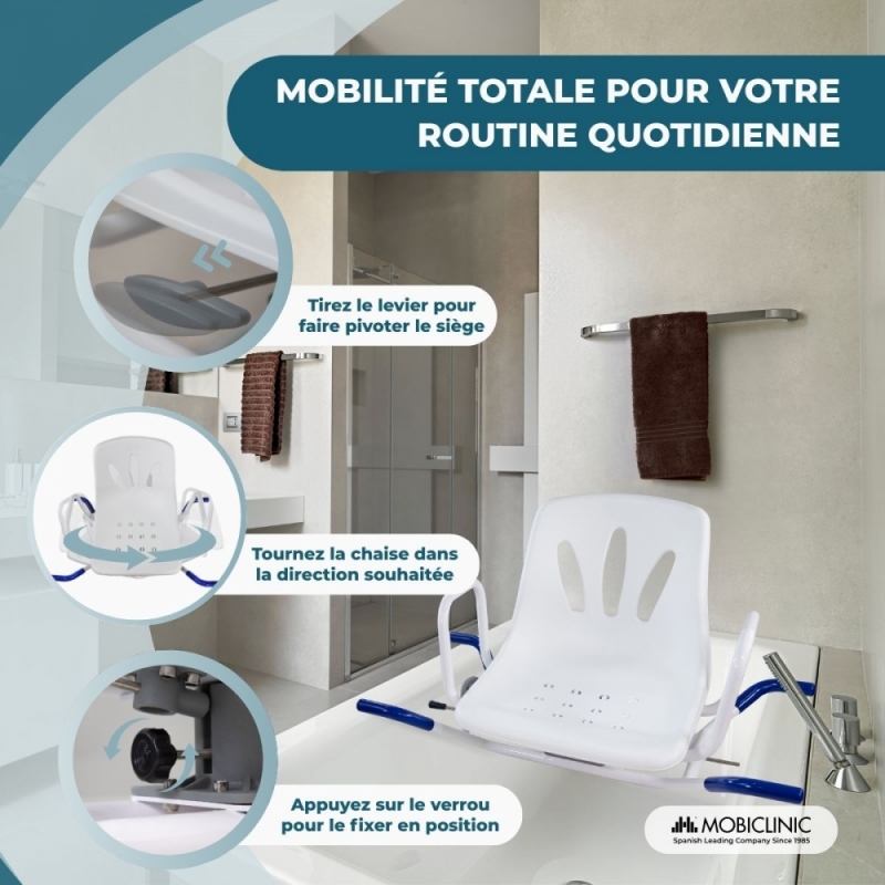 Chaise de bain pivotante | Accoudoirs | Dossier | Anatomique | 360º | Acier inoxydable | Lago | Mobiclinic