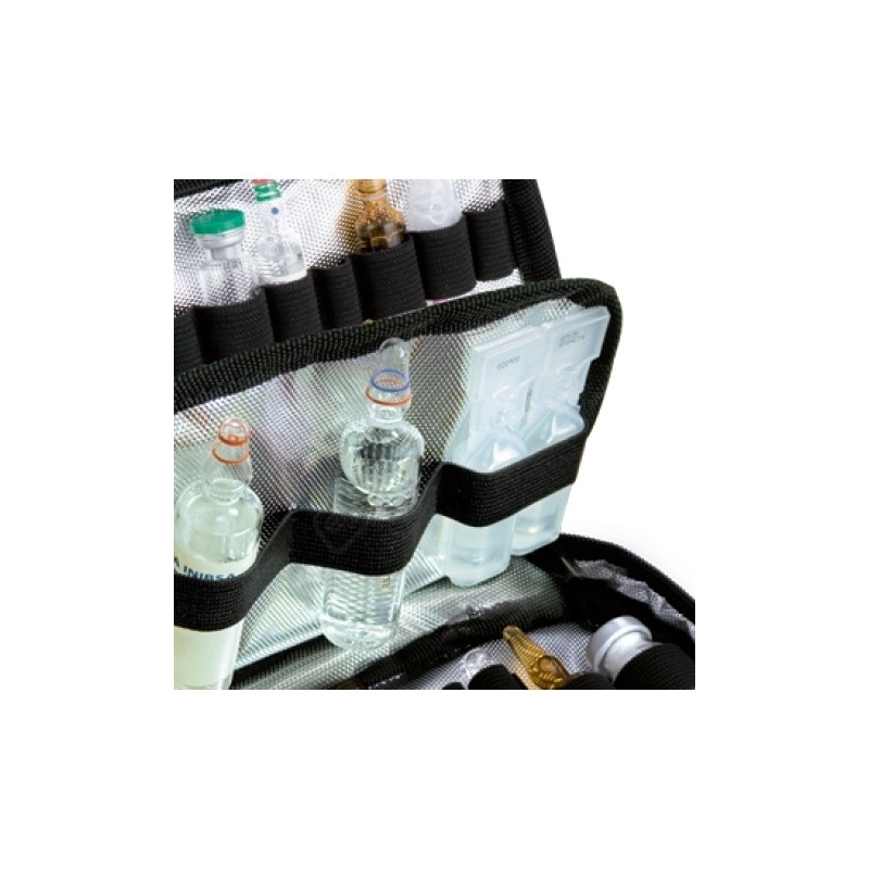 Cet ampoulier isotherme de taille moyenne propose à l’utilisateur un accessoire supplémentaire pour porter des ampoules. Cela permet au professionnel de la santé de porter les médicaments de manière organisée et en parfait état. De cette façon, il pourra offrir un service de qualité. Vous pouvez porter jusqu’à 50 ampoules grâce à ses élastiques : 24 petites, 18 moyennes et 7 grandes. Sa fixation est en velcro et le séparateur central est matelassé où vous trouverez les 7 grands élastiques .