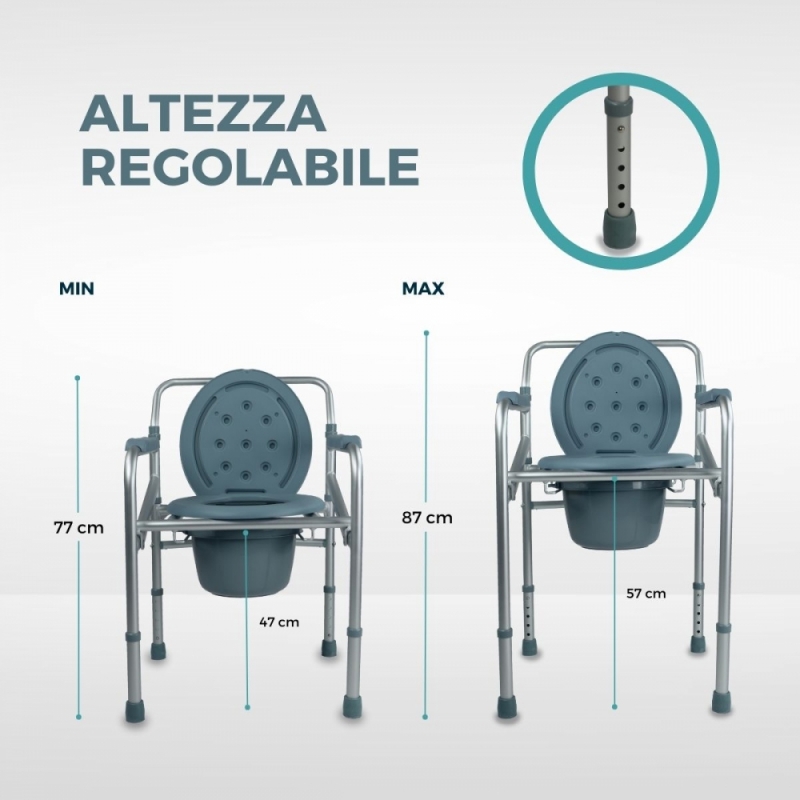 Sedia wc | Pieghevole | Leggera | Con coperchio | Altezza regolabile | Braccioli | Alluminio | Mar | Mobiclinic