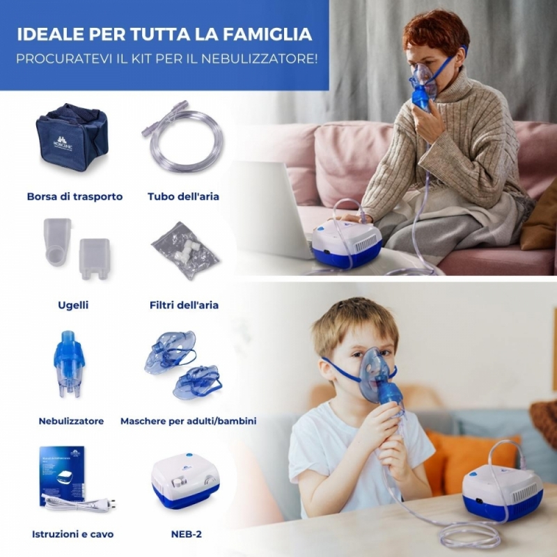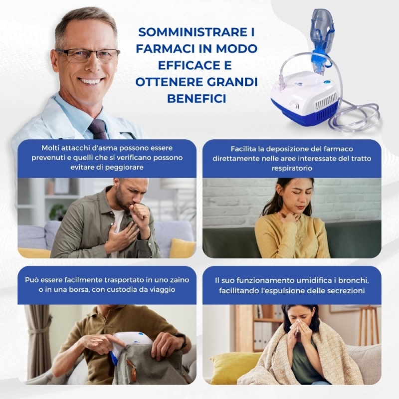 Questo tipo di nebulizzatore aerosol deve essere utilizzato sotto la supervisione di un medico e/o di uno specialista delle vie respiratorie.