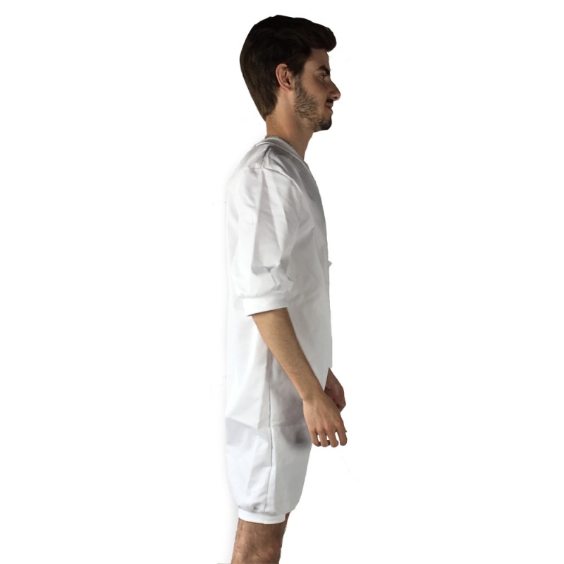 Il pigiama intero corto (manica e gamba corta) è indicato per pazienti che soffrono di incontinenza e/o demenza. È dotato di una cerniera nella parte interna delle gambe (da caviglia a caviglia), cucita in modo tale che il paziente non possa aprirla e toccare il pannolone. Tuttavia, gli assistenti sanitari possono cambiare facilmente il pannolone senza dover togliere il pigiamone intero. Il pigiama sanitario è perfetto anche per proteggere la pelle dei pazienti dal rischio di autolesionarsi.
