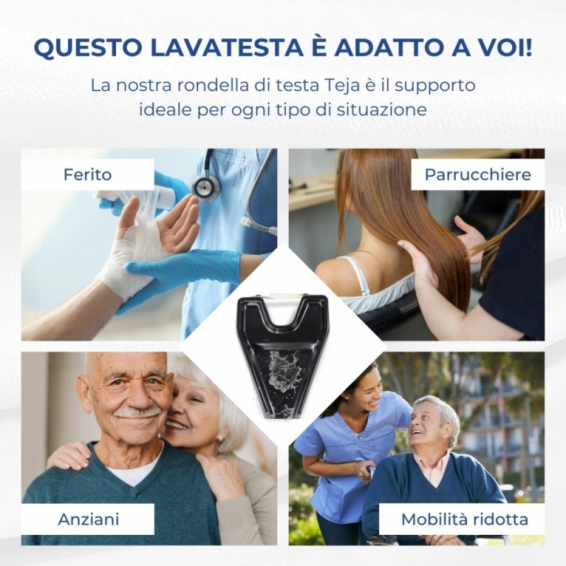È importante prendersi cura dell'igiene personale, capelli puliti e lucenti sono sinonimo di cura e igiene. Purtroppo, le persone con disabilità, su sedia a rotelle o allettate incontrano difficoltà nello svolgere azioni ordinarie come lavare i capelli. Questo lavatesta portatile per disabili è stato progettato proprio con questo scopo.