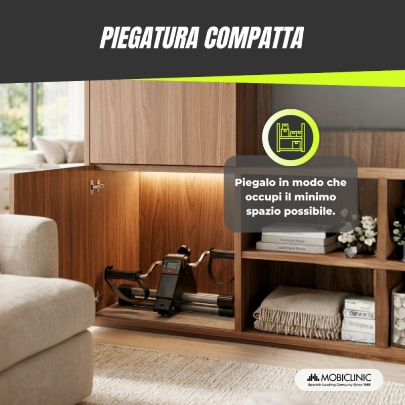 DESIGN PIEGHEVOLE ULTRA-COMPATTO : questo attrezzo per esercizi a pedali si ripiega completamente, occupando uno spazio minimo quando non viene utilizzato. Ideale per piccole case, uffici o per un facile trasporto.