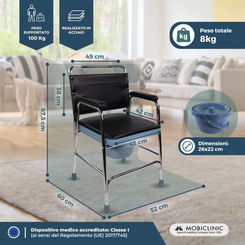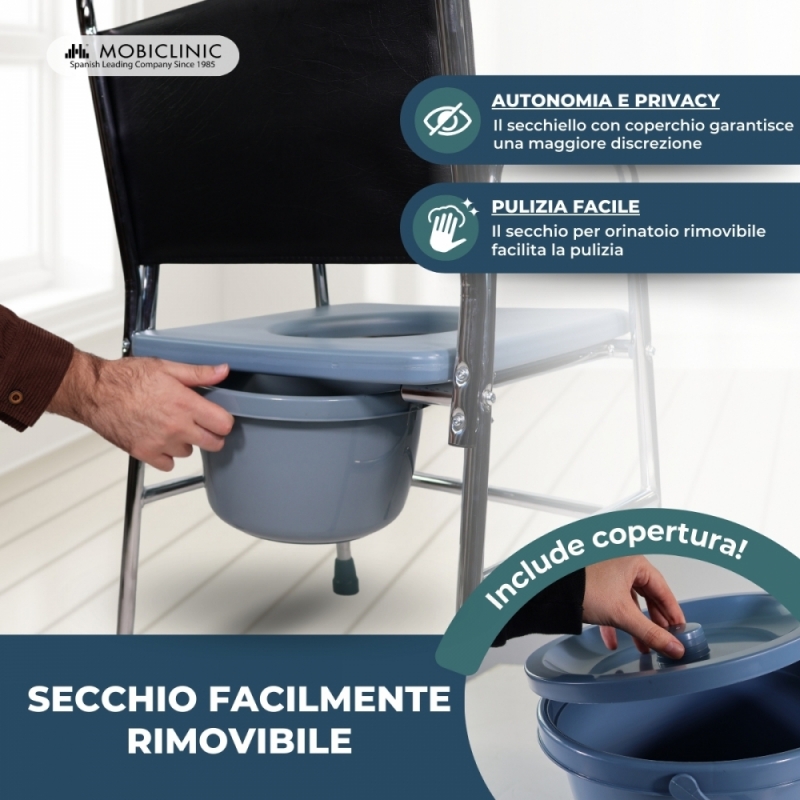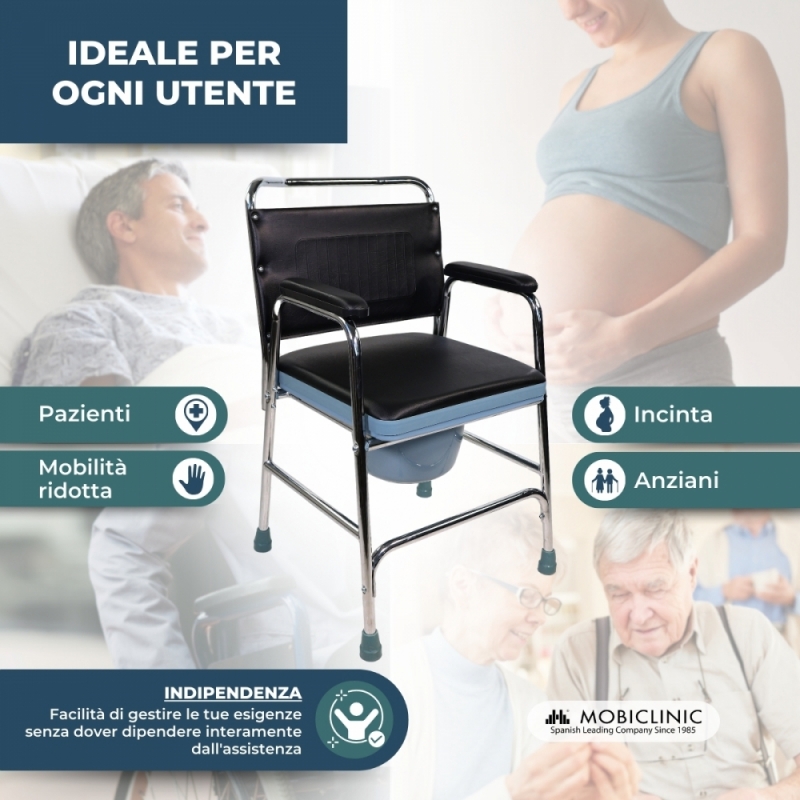La comoda modello Velero è ottima per le persone con problemi di accesso alla toilette, come gli anziani o le persone con difficoltà motorie. Questa sedia da bagno ti aiuterà nella vita di tutti i giorni e ti alleggerirà nei momenti importanti come andare in bagno.