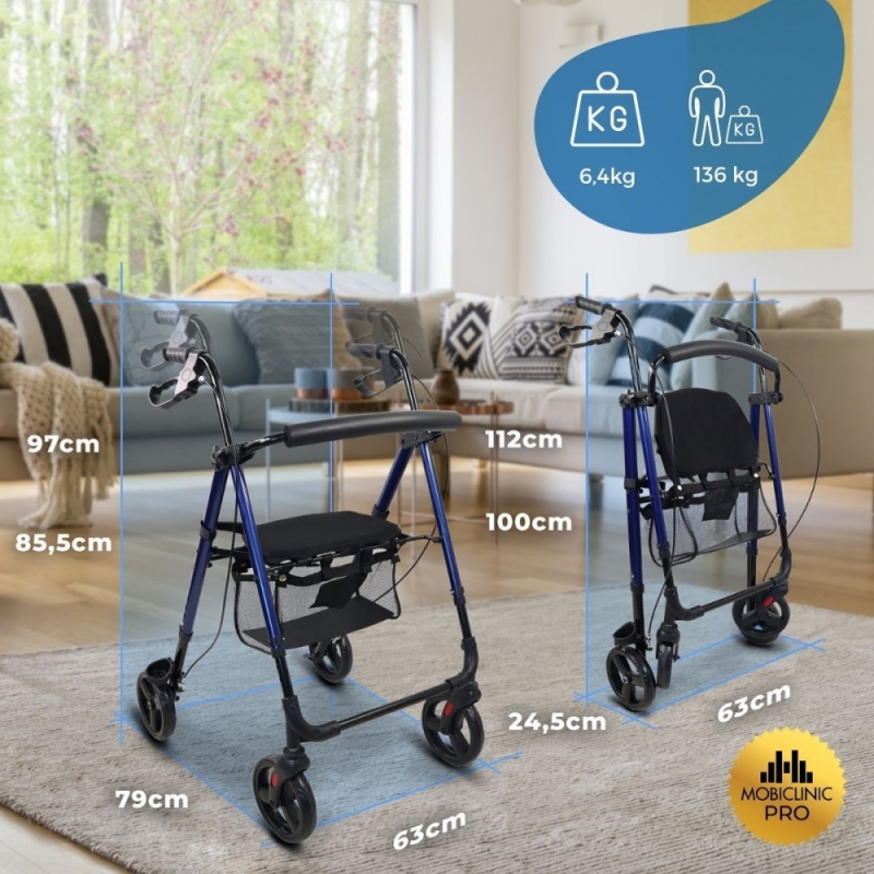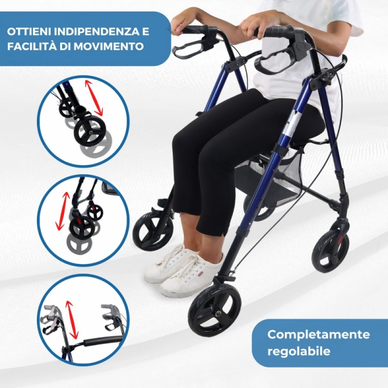 Girello anziani | Pieghevole | Alluminio | Freni sull'impugnatura | Seduta | 4 ruote | Augusto | TOP | Mobiclinic