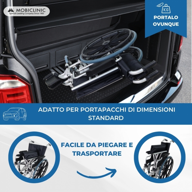 PORTE E BAULE : questa sedia a rotelle ha una larghezza totale di 64,6 cm, quindi può passare attraverso porte di larghezza standard di 72,5 cm. Inoltre, poiché questa sedia piegata misura solo 29,5 cm, può essere trasportata nel bagagliaio di un veicolo tipo Ford Focus. Assicurati delle misure delle tue porte e del tuo veicolo per verificare che si adatti a te.