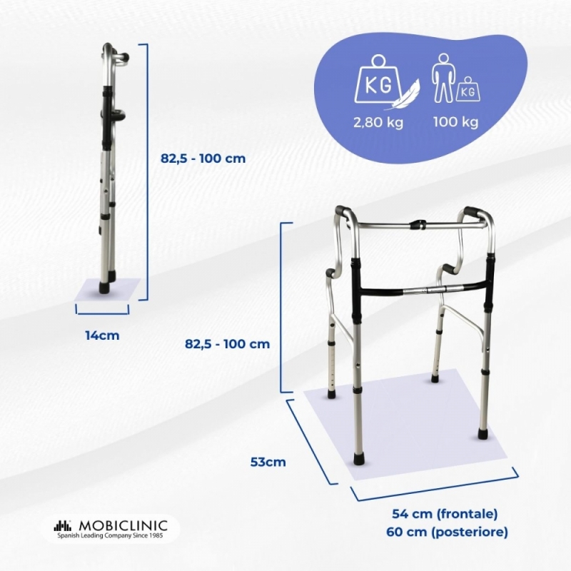 Deambulatore per anziani | Alluminio | Pieghevole | Senza ruote | Pórtico | Mobiclinic