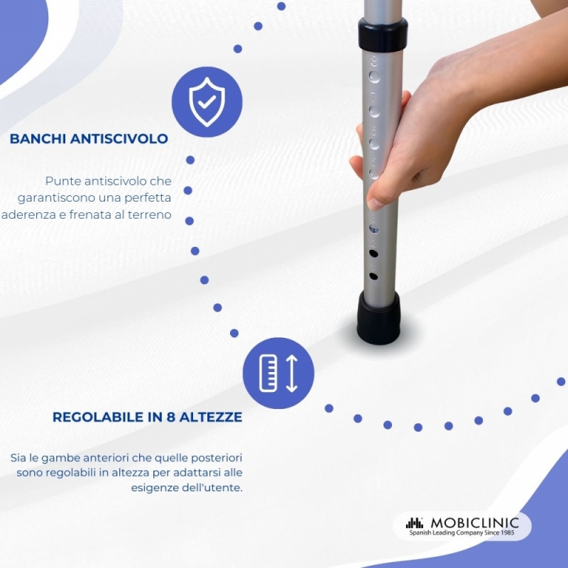 Il deambulatore in alluminio ti garantisce la massima leggerezza e facilità di movimento.