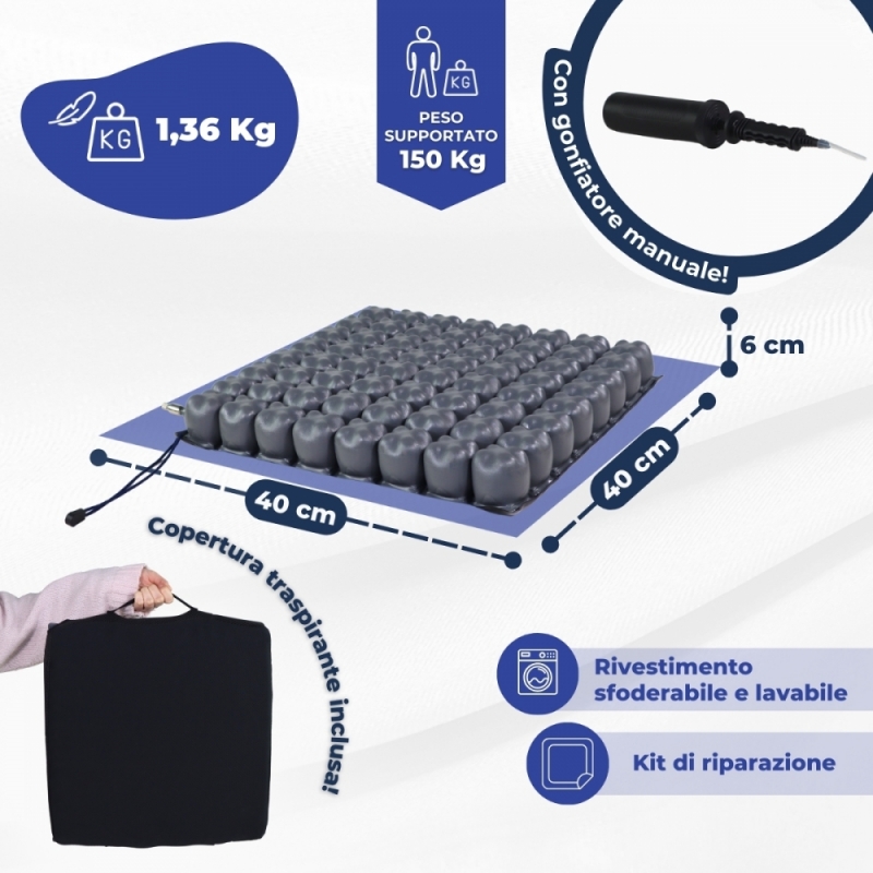 Cuscino antidecubito d'aria | Con 1 valvola | Fodera traspirante | Mobiclinic