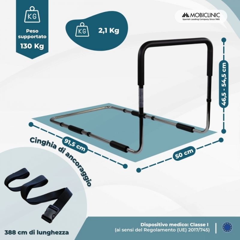 FUNZIONALITÀ: Questo dispositivo è progettato pensando alla sicurezza e al comfort, per facilitare l'alzata e la mobilità a letto, promuovendo l'autonomia dell'utente. È perfetto per pazienti in fase di recupero, anziani o persone con mobilità ridotta, offrendo un supporto solido e sicuro.
