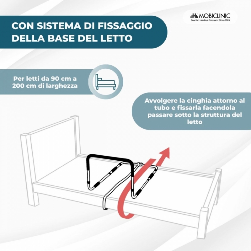 Per maggiore stabilità e sicurezza, è dotato di una cinghia di 4 metri che fissa la struttura del letto. Il corrimano è inoltre rivestito in morbida schiuma, offrendo una presa comoda e antiscivolo. Questo corrimano aiuta a prevenire le cadute durante il sonno, garantendo tranquillità sia all'utente che a chi si prende cura di lui. È leggero, maneggevole e molto facile da montare, migliorando la qualità della vita di chi ne ha bisogno.