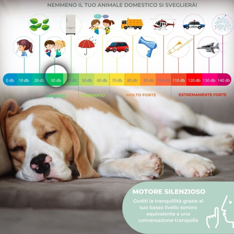 Il compressore per materassi antidecubito è invece compatto, affidabile, facile da usare e molto silenzioso , equivalente ad una conversazione a bassa voce in proporzione ai livelli di decibel rispetto alle diverse tipologie di ambienti, punto che deve essere tenuto in considerazione poiché per il suo utilizzo deve essere sempre connesso.
