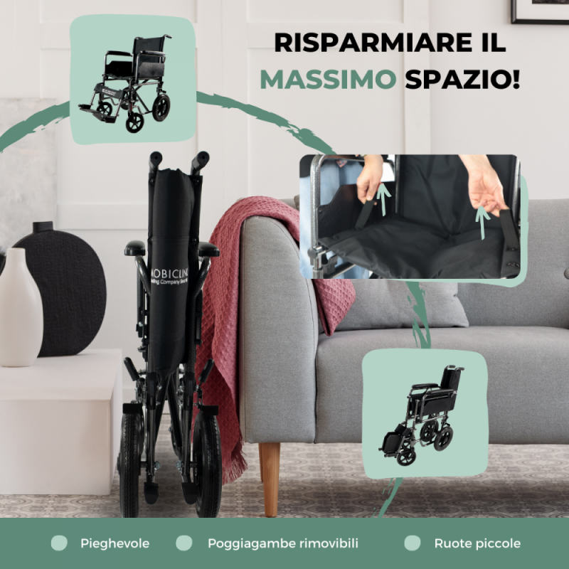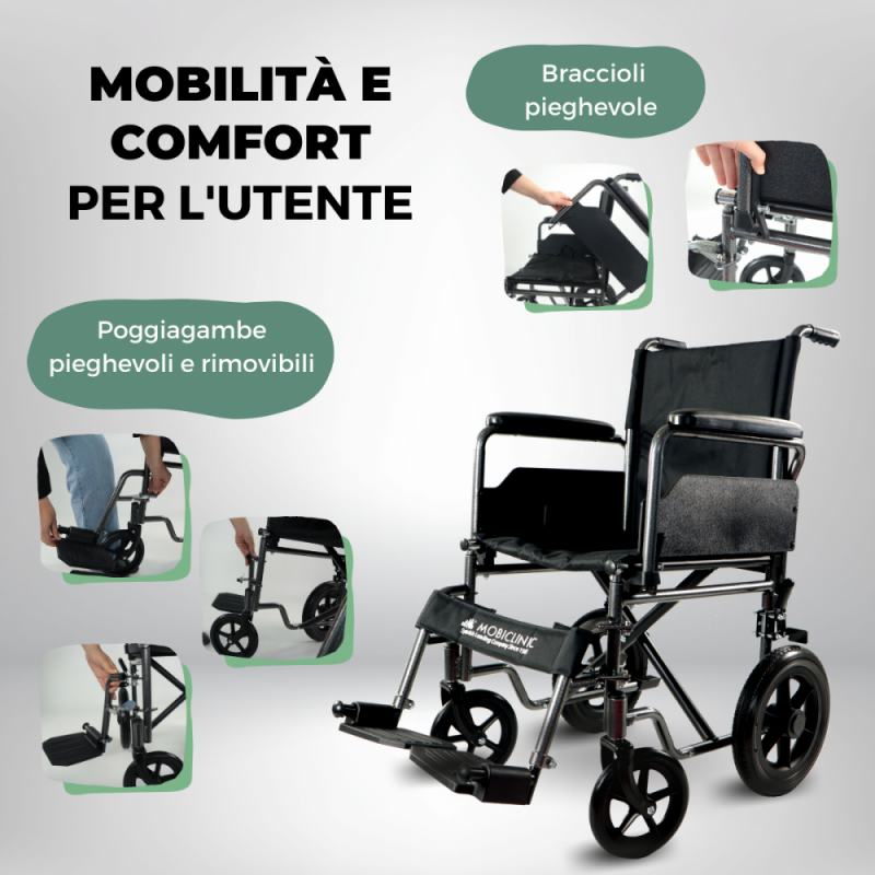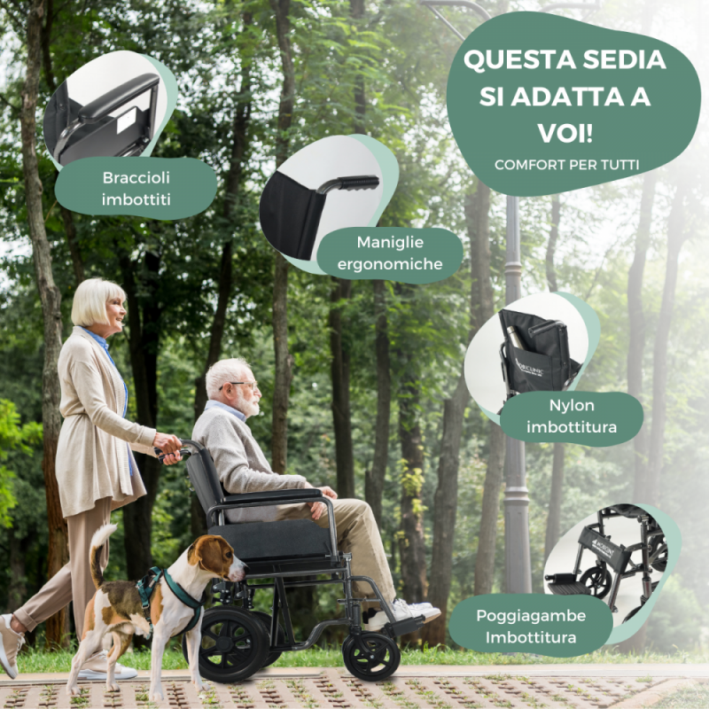 Questa è la sedia a rotelle pieghevole che fa per te! Inoltre, le sedie a rotelle di seconda mano possono causare problemi non contenendo tutti gli accessori o non essendo pulite e igieniche; è molto meglio per voi e i vostri cari sostenere la mobilità e il riposo dei vostri anziani comprando questa carrozzina per anziani nuova.