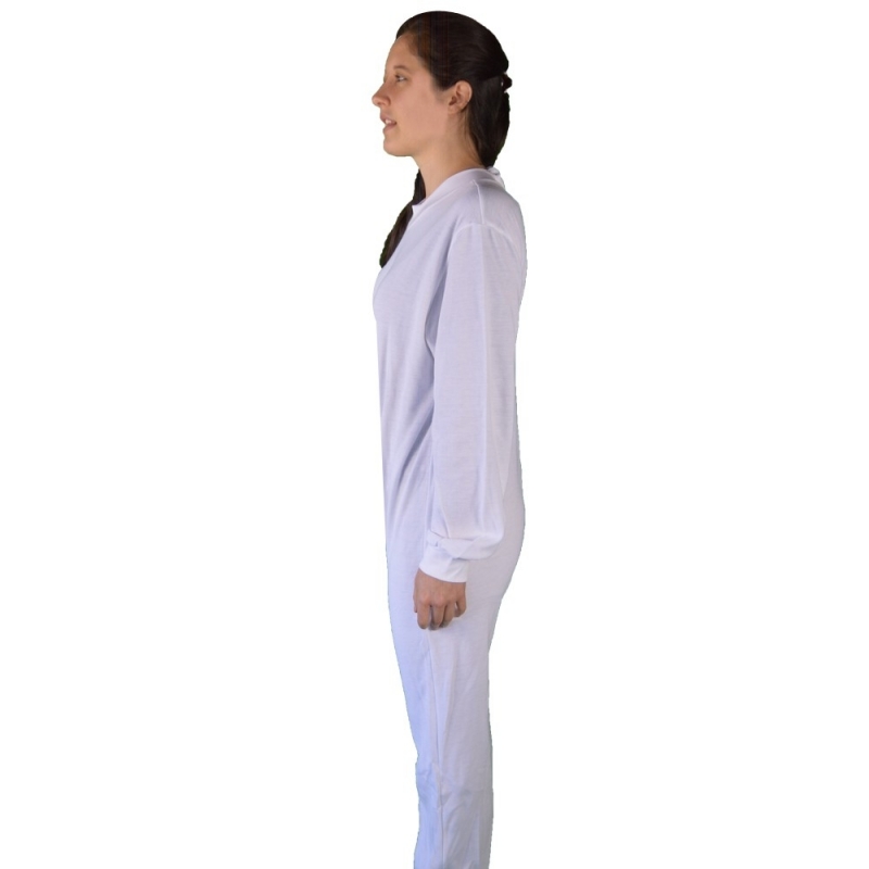 Il pigiamone intero (con maniche e gambe lunghe) è indicato per pazienti che soffrono di incontinenza e/o demenza. È dotato di una cerniera nella parte interna delle gambe (da caviglia a caviglia), cucita in modo tale che il paziente non possa aprirla e toccare il pannolone. Tuttavia, gli assistenti sanitari (in casa o in una casa di riposo, ecc.) possono cambiare facilmente il pannolone al paziente senza bisogno di togliere completamente il pigiama sanitario.