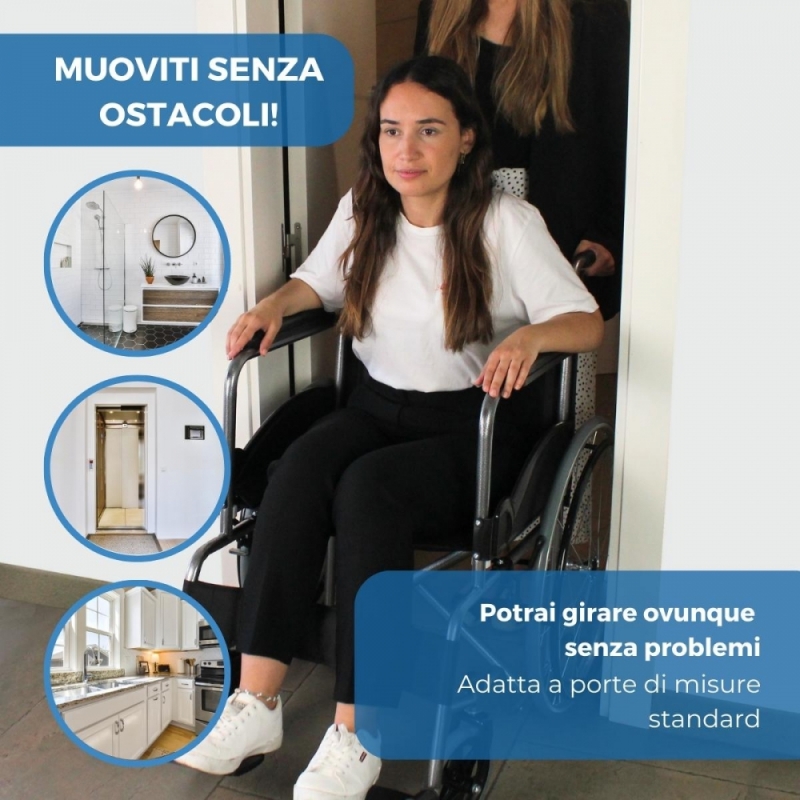 La sua seduta e lo schienale ergonomici svelano la praticità e il comfort di questa sedia a rotelle. Le ruote sono solide e non hanno bisogno di essere gonfiate, quindi sono più resistenti delle tradizionali ruote pneumatiche.